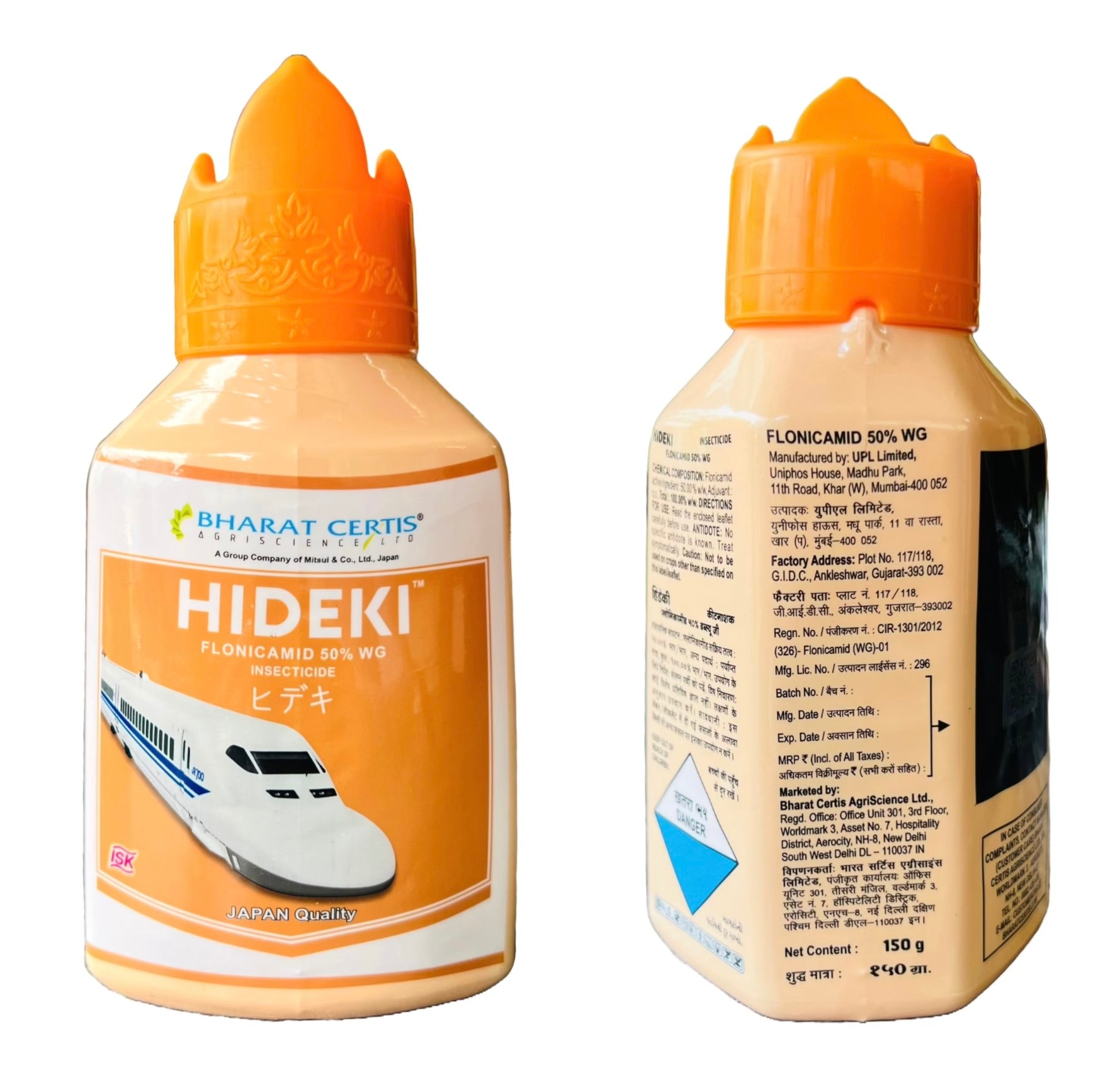 HIDEKI is a powerful insecticide formulated with Flonicamid 50% WG, known for its rapid action against sucking pests. It works by disrupting the feeding behavior of pests like aphids, jassids, whiteflies, and thrips—stopping crop damage within hours of application. Ideal for use on a wide range of crops including cotton, vegetables, and fruits.
